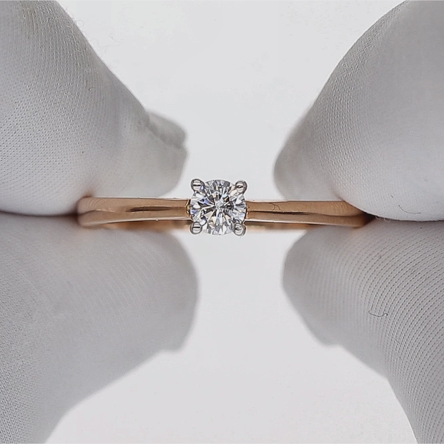 Sužadėtuvių žiedas iš rausvo aukso su viena centrine akute – santūrus ir elegantiškas pasirinkimas.