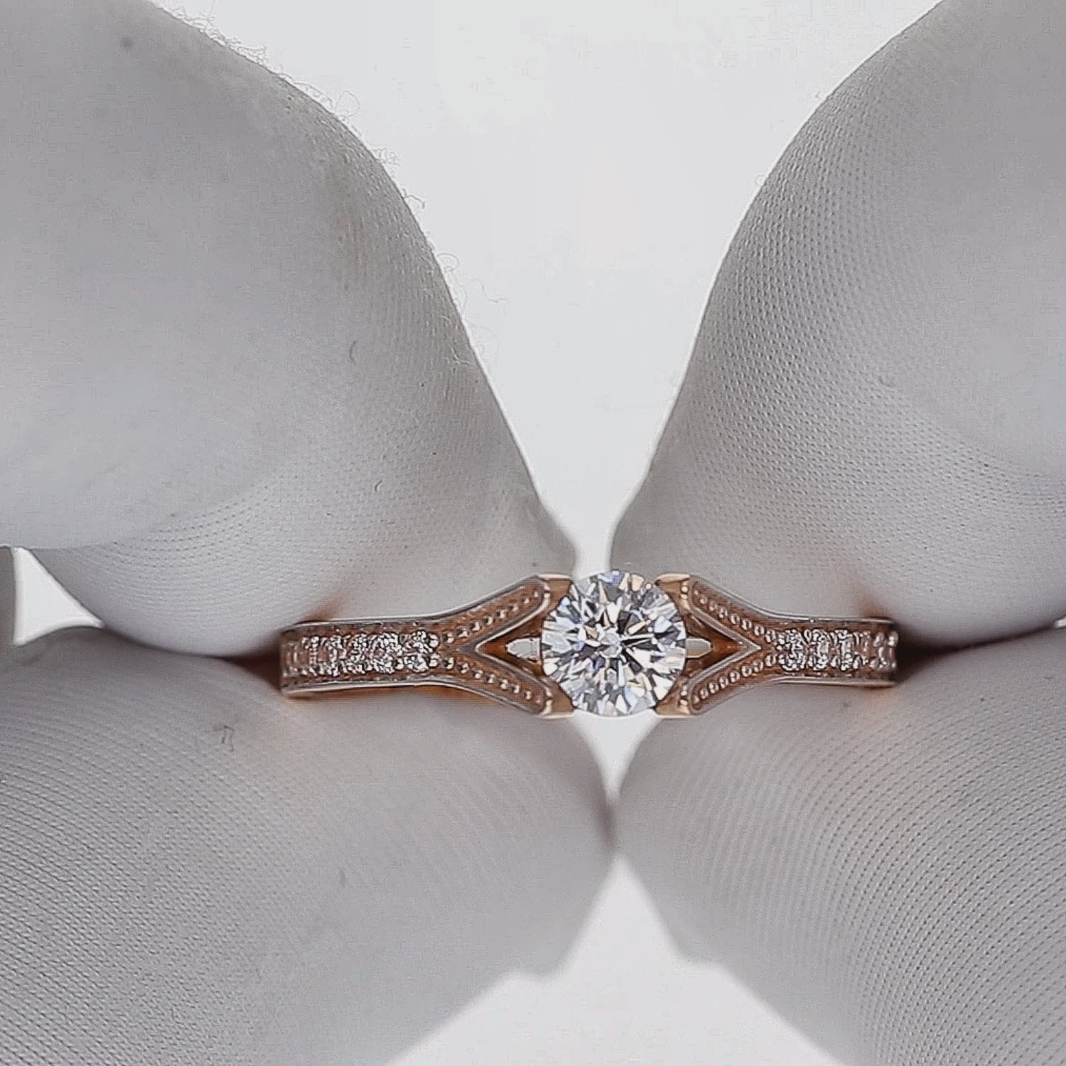 Sužadėtuviųžiedasiš585prabosraudonoauksosubaltucentriniucirkoniuirdailiomisšoninėmisakutėmis–klasikinėpusiausvyra.